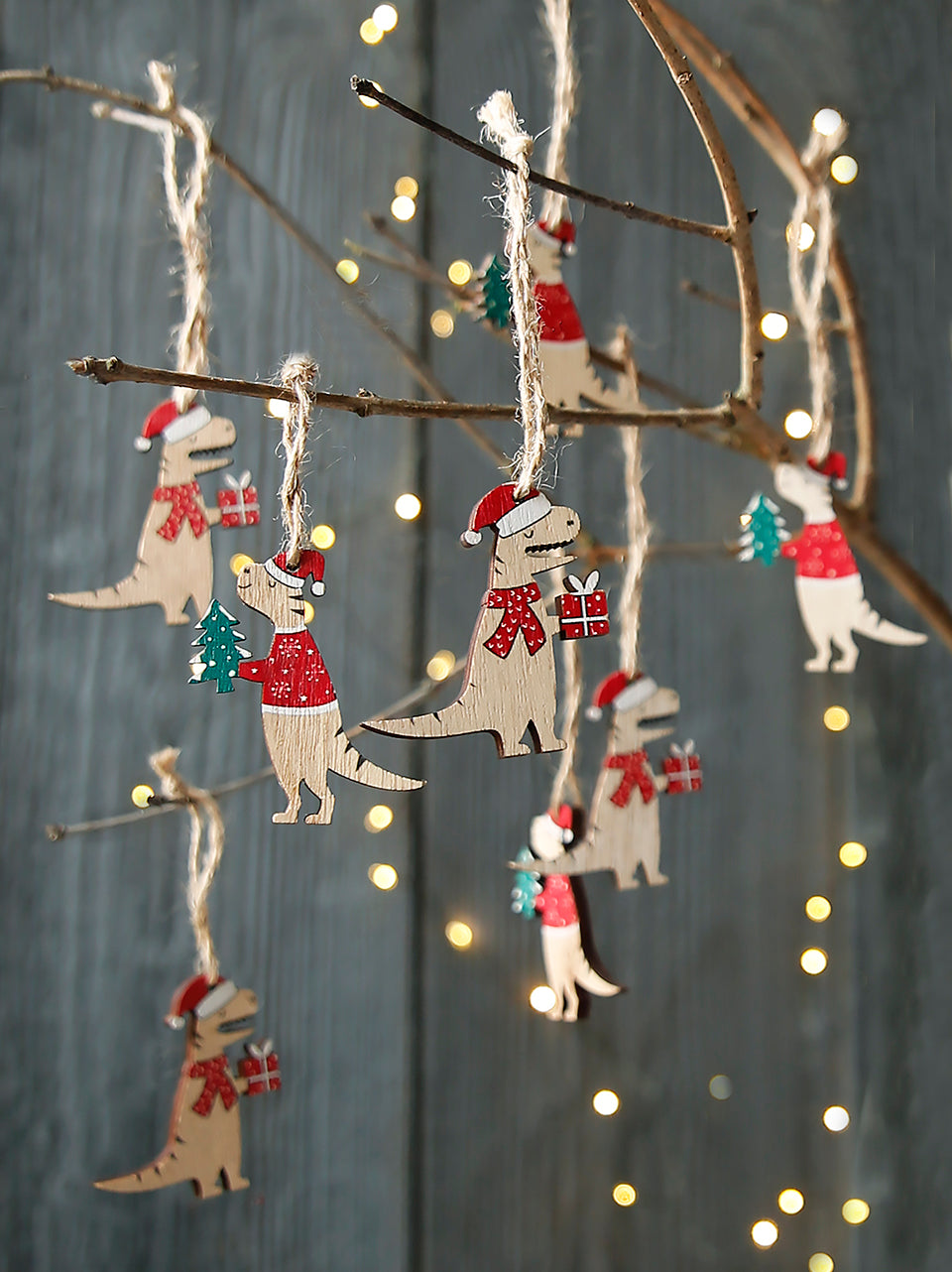 Aggiungi un tocco di fascino preistorico alle tue decorazioni natalizie con dinosauri che sorreggono l'albero e portano regali, avvolti in maglioni natalizi e cappelli di lana. Le decorazioni sono pre-appese con spago e sono ideali per decorare l'albero o i regali.